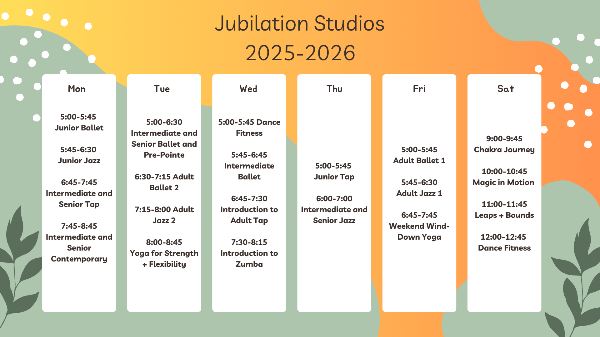 Discover the magic of dance this year at Jubilation Studios. Whether you’re an experienced dancer or taking those first steps, our knowledgeable instructors will be there to support and guide you through an exciting dance season!